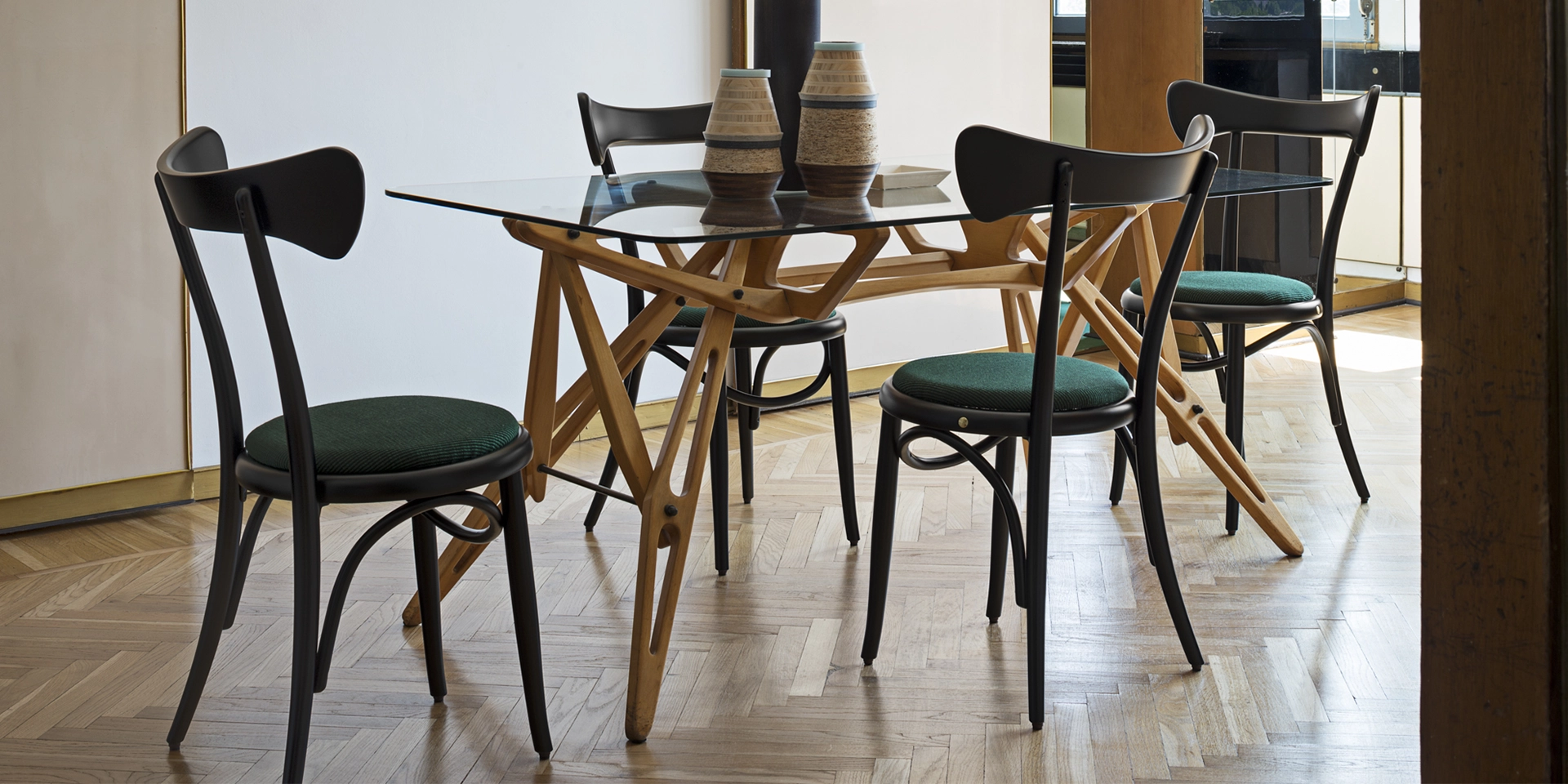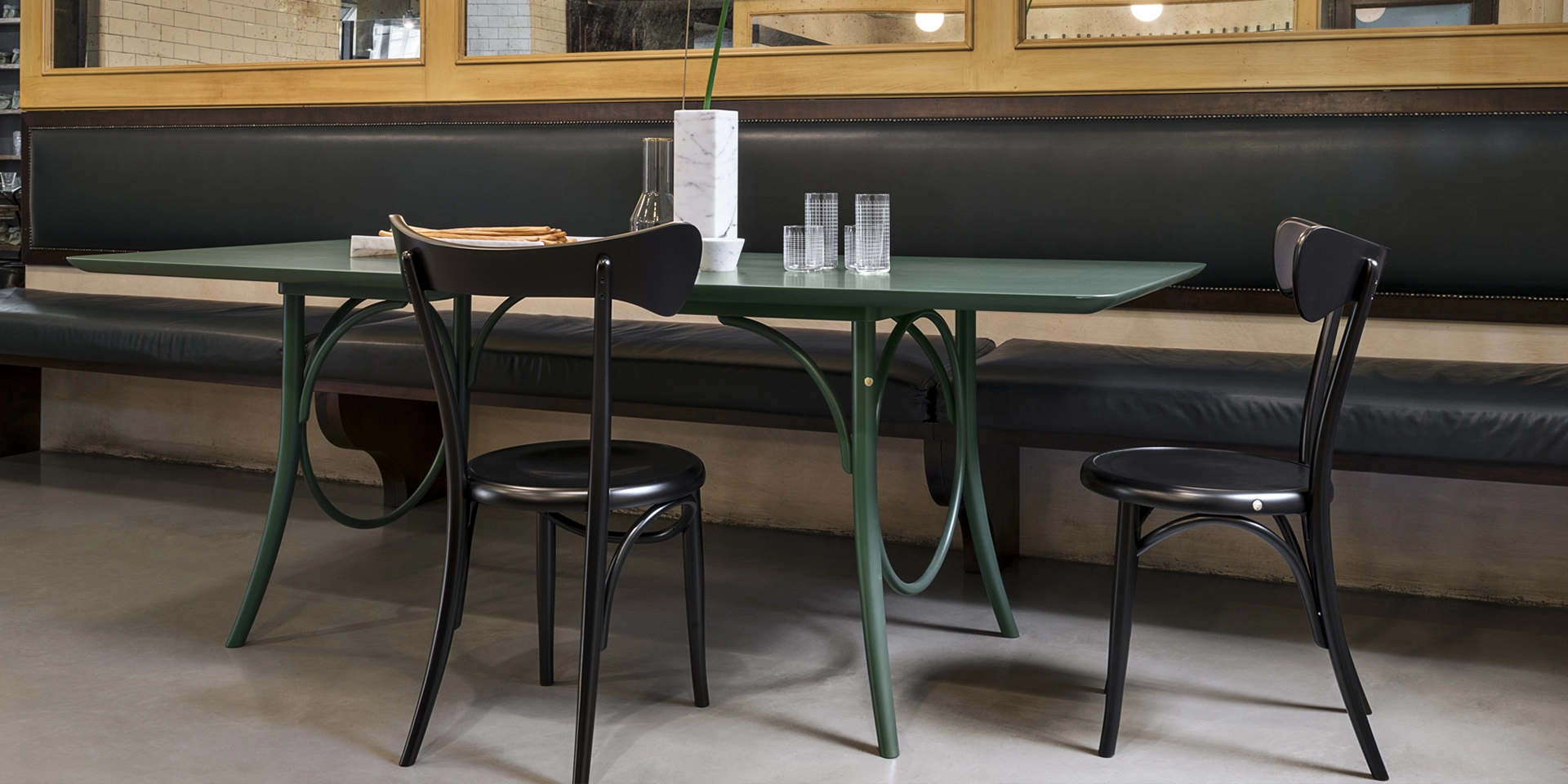 In successione con la raffinata sinuosità della lounge chair LEHNSTUHL e della sedia BODYSTUHL, Nigel Coates presenta la sedia CAFÉSTUHL, nuova originale rilettura con twist contemporaneo della tradizione Thonet. Estremamente confortevole ed ergonomica, si contraddistingue per lo schienale scultoreo dal carattere antropomorfo che ricorda la tipica forma triangolare delle scapole.