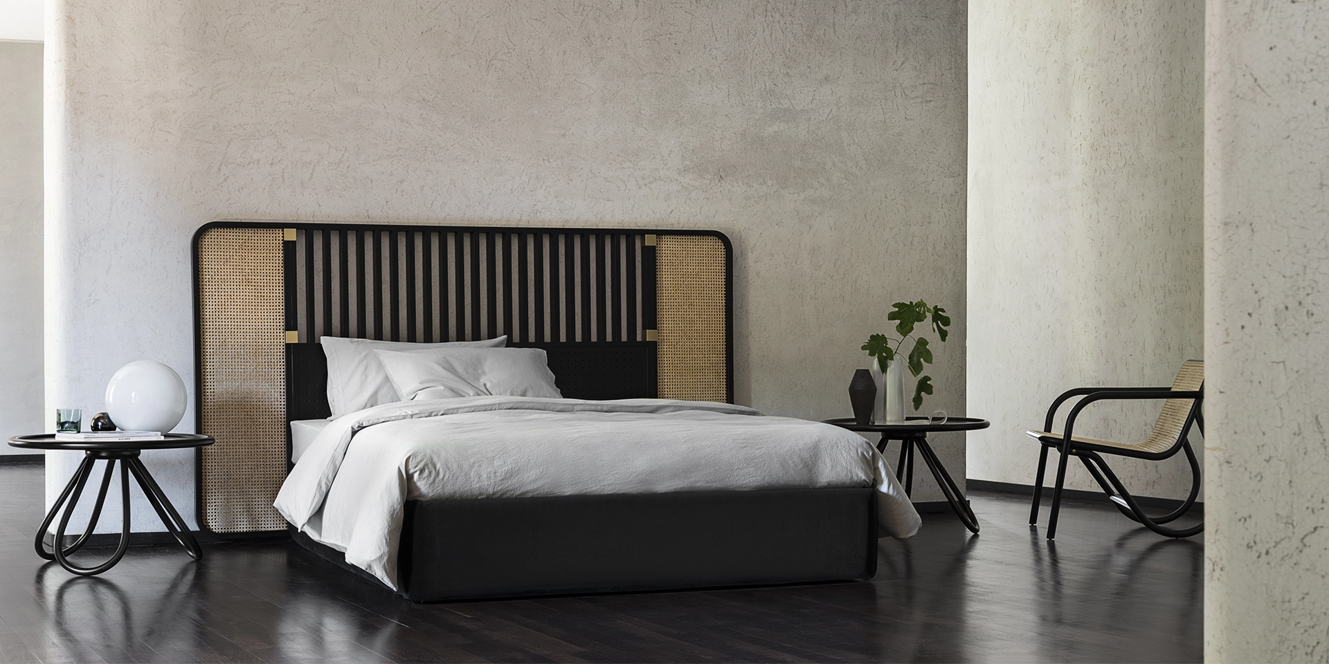 Al debutto nel mondo dell’arredo, con il loro approccio fortemente architettonico, Storagemilano, studio di architettura e design fondato da Barbara Ghidoni, Marco Donati e Michele Pasini, firmano la testiera OTTOW dalla forte presenza scenica, con struttura in legno di faggio curvato a sezione quadra in due finiture, laccato nero o naturale.
