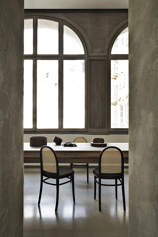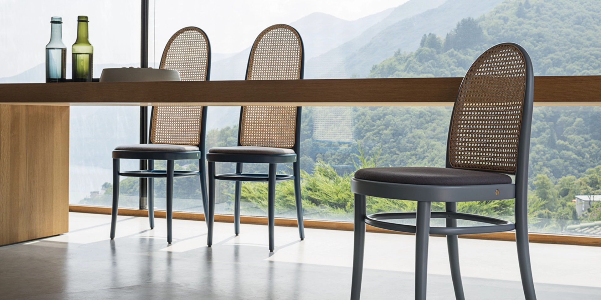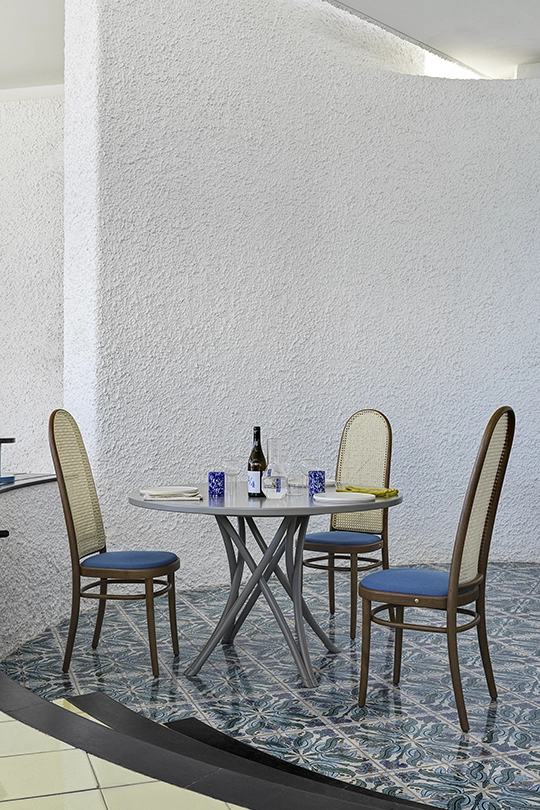MORRIS chair, by the creative duo GamFratesi, reinterprets the classic Viennese seat, by using new proportions which broaden its perspective, suggesting new references to design icons. The structure is made up of steam-bent solid beech elements and includes an upholstered chair with a woven cane backrest, available in two heights.