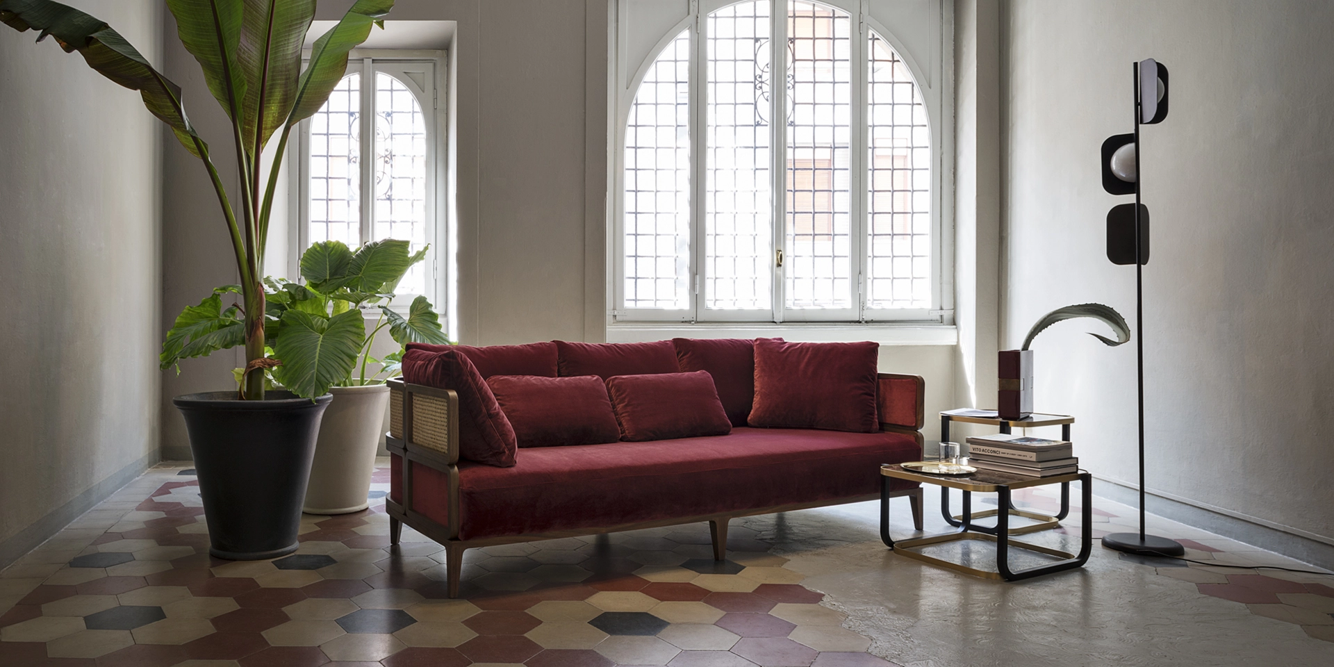 PROMENADE, the upholstered collection designed by Philippe Nigro, available in one or two seats sofa versions and in the modular one. The project is expressed in a highly distinctive decorative language that takes its inspiration from the minimalism and attention to detail of the Viennese secession, an artistic movement of the last century.