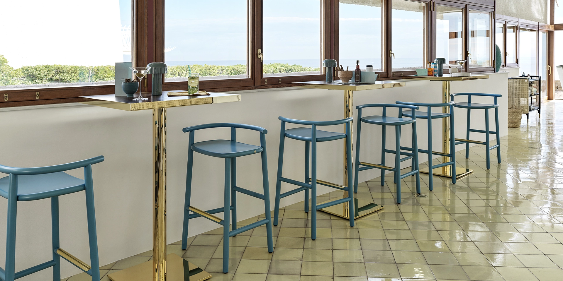 The refined elegance of the Japanese minimalism by Nendo abstracts from the brands’ stylistic features, in order to reinterpret them in a contemporary light. A rigorous and poetic approach which distills the essence of the design research, where the steam-bent wood expresses only one structural detail, which draws the attention on each element of the SINGLE CURVE COLLECTION: low table, dining table and stool in three or four legs version.