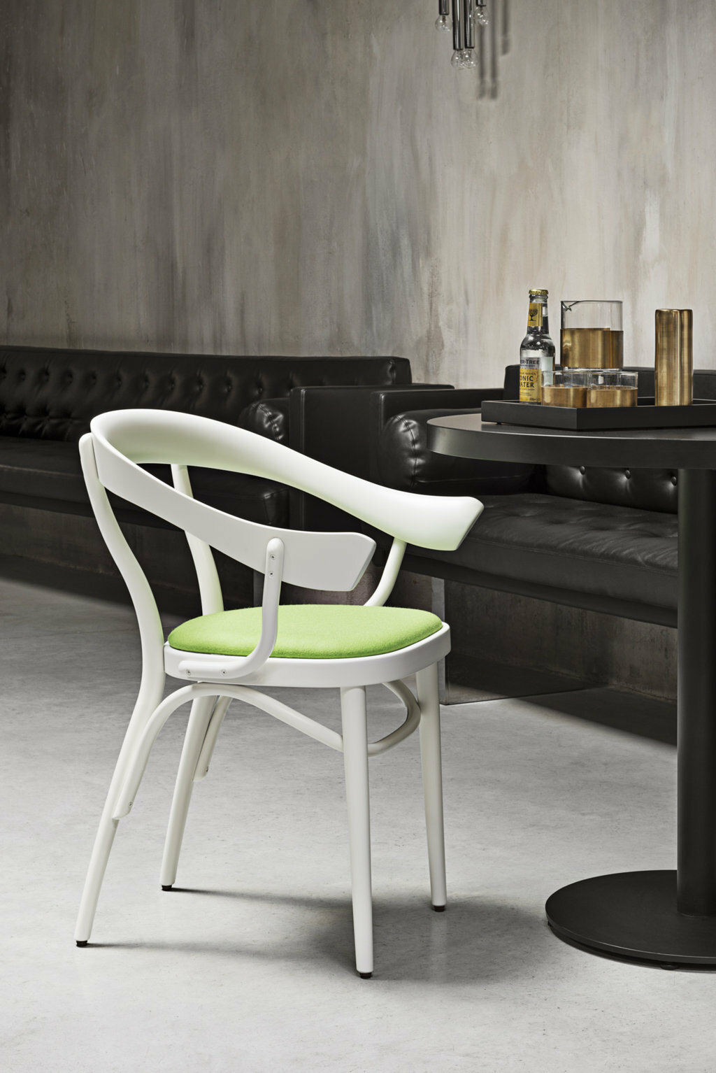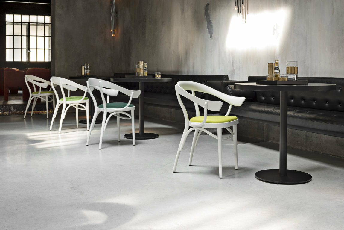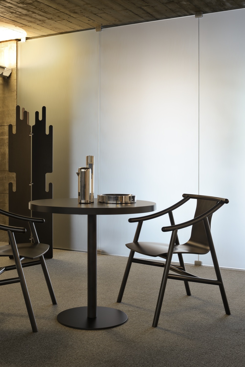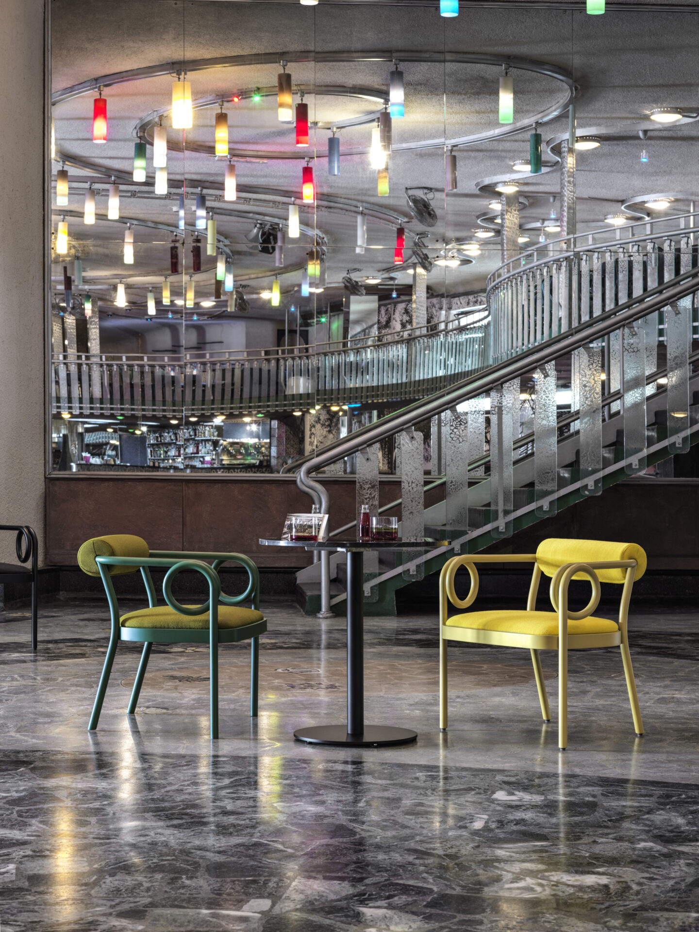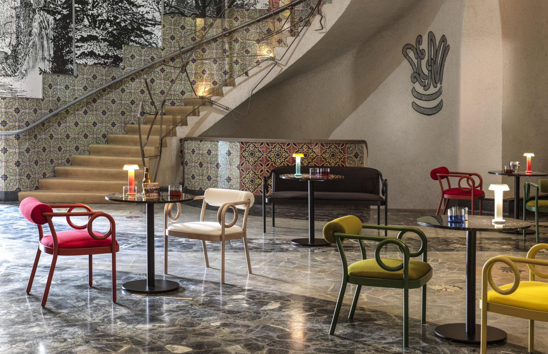 La líneas esenciales y los perfiles redondeados del sobre, la base y el montante ofrecen una versión contemporánea de la clásica mesita de bar. Un elemento funcional que no sacrifica una sofisticada idea de elegancia y que se adapta con versatilidad a los espacios contract. El sobre en multicapa se puede enriquecer con un elegante aro perimetral en acabado bronce que evoca, con discreción, atmósferas déco.