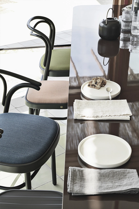 Philippe Nigro a conçu pour Gebrüder Thonet Vienna BEAULIEU, une chaise et un fauteuil caractérisés par des courbes assemblées comme un jeu de construction, qui se rejoignent pour créer un dossier et des accoudoirs, permettant d’obtenir deux types d’assise avec quelques modifications : une chaise avec un dossier sinueux particulier et confortable et un fauteuil enveloppant, où la réunion harmonieuse des pieds arrière et du dossier forme deux accoudoirs.