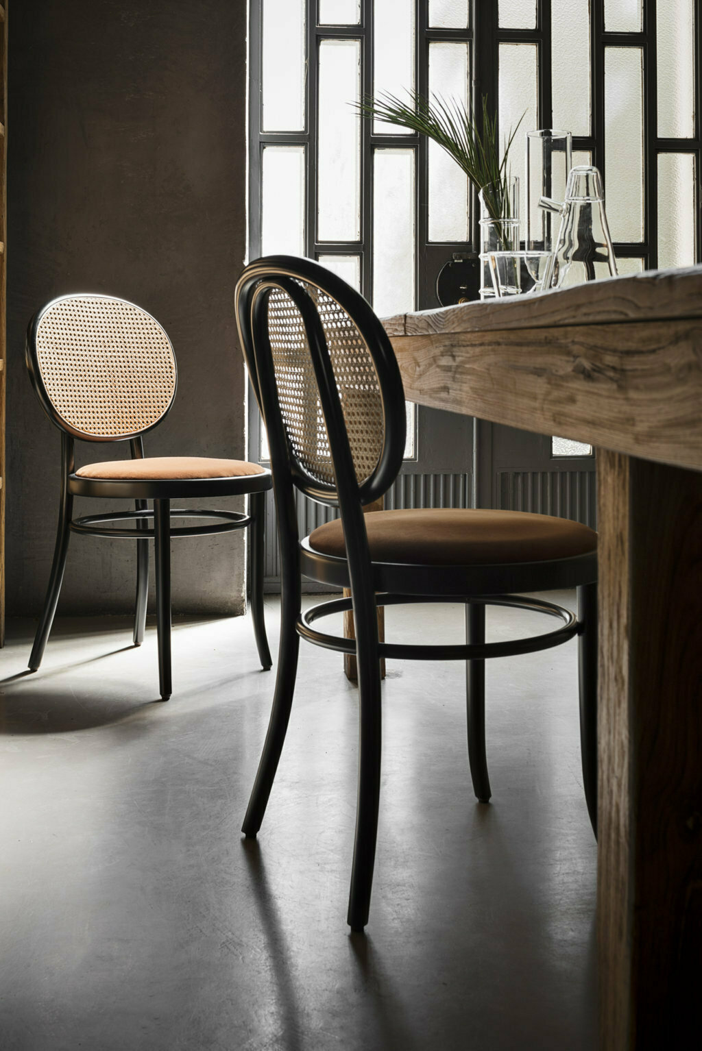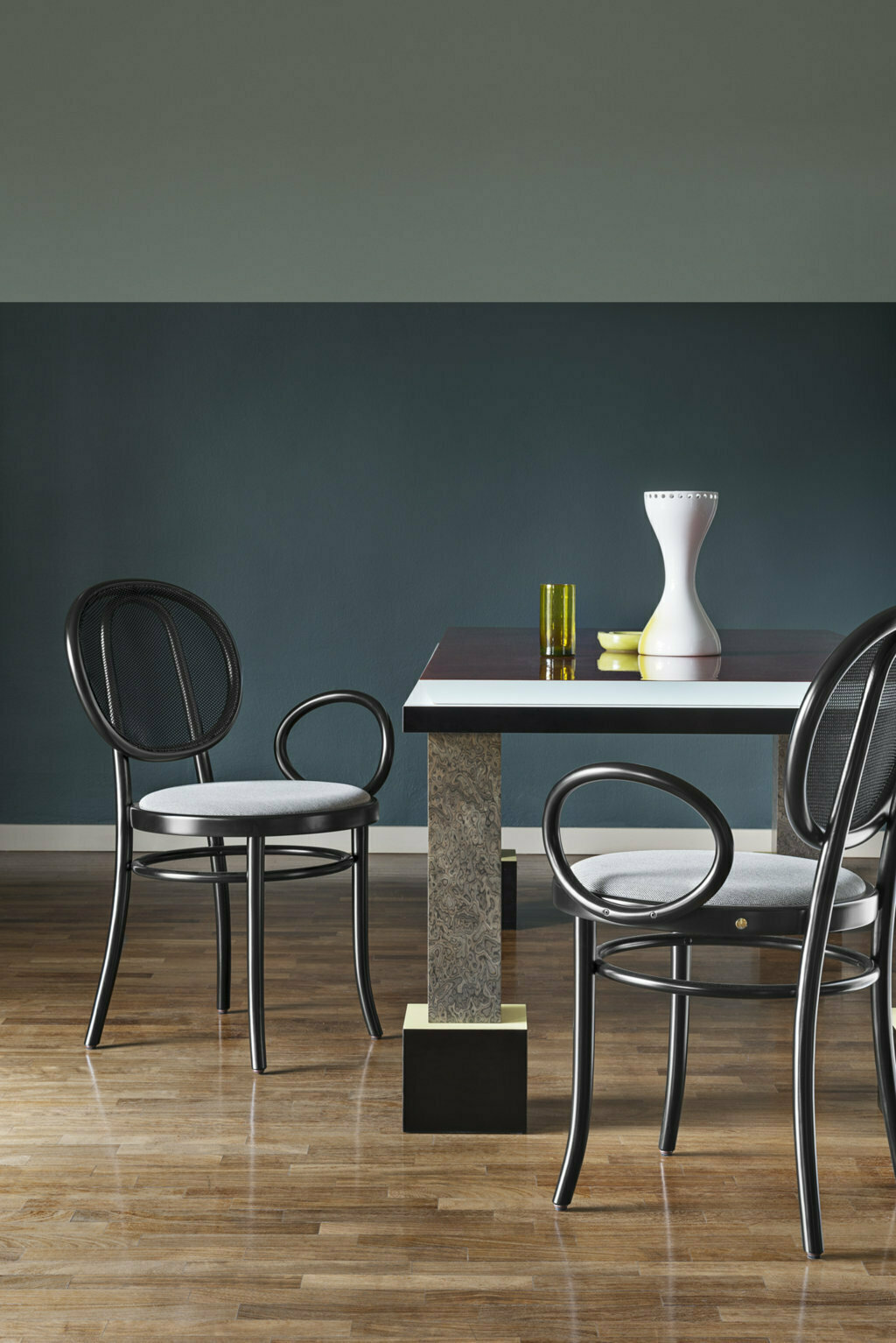 La chaise N.0 signée par Front est un projet qui raconte une nouvelle idée d’élégance grâce à la puissance expressive des principales caractéristiques des propositions GTV : le bois courbé et la paille de Vienne. Le duo suédois réinterprète ces deux éléments de manière contemporaine, en améliorant l’esthétique, en utilisant le cercle comme signe géométrique pour le dossier, l’assise et l’accoudoir.
