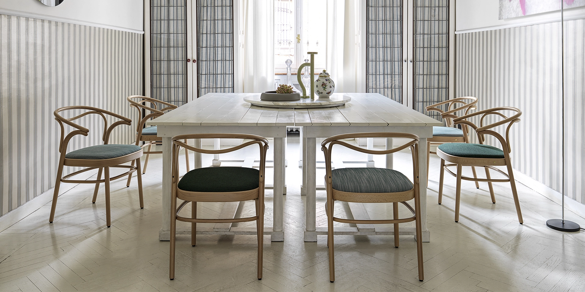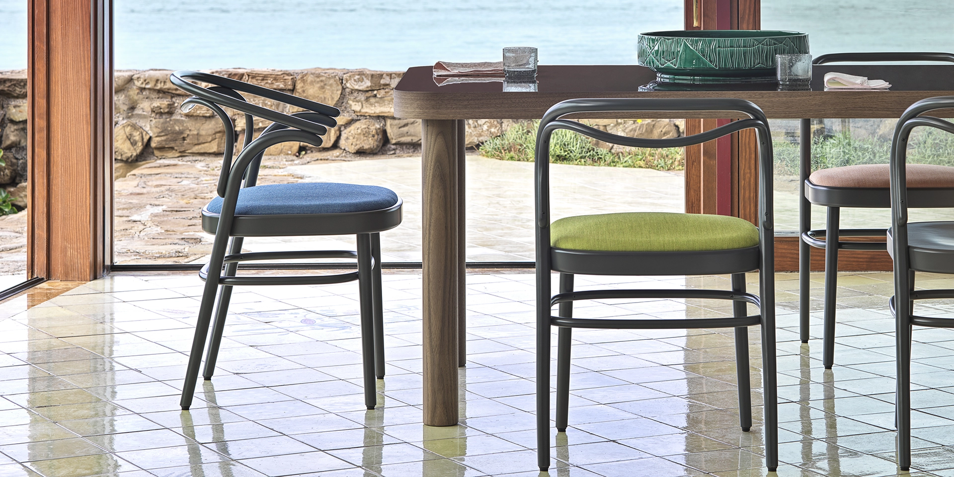 Philippe Nigro ha disegnato per Wiener GTV Design Beaulieu, sedia e poltroncina caratterizzate da curve assemblate come un gioco di costruzione, che si incontrano per creare schienale e braccioli, permettendo di ottenere con poche modifiche due tipologie di seduta: una sedia dal particolare schienale sinuoso e accogliente e una poltroncina avvolgente, dove l’incontro armonico delle gambe posteriori e dello schienale formano due braccioli.