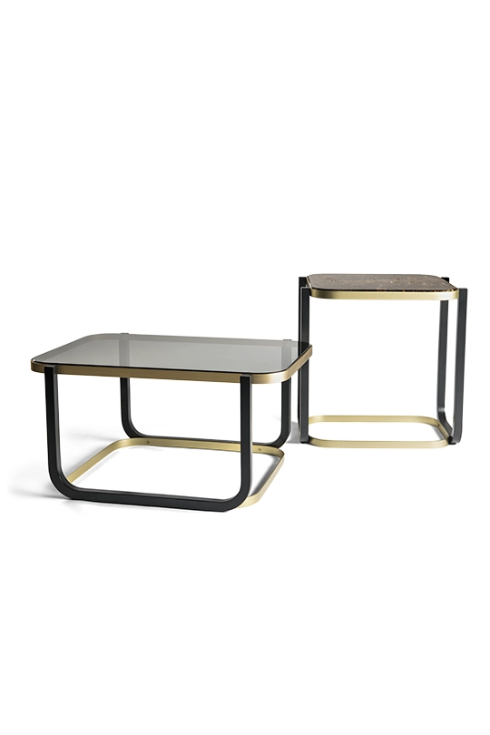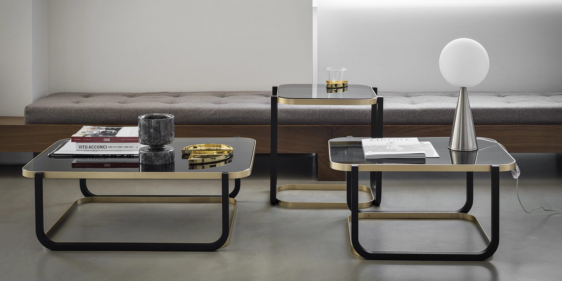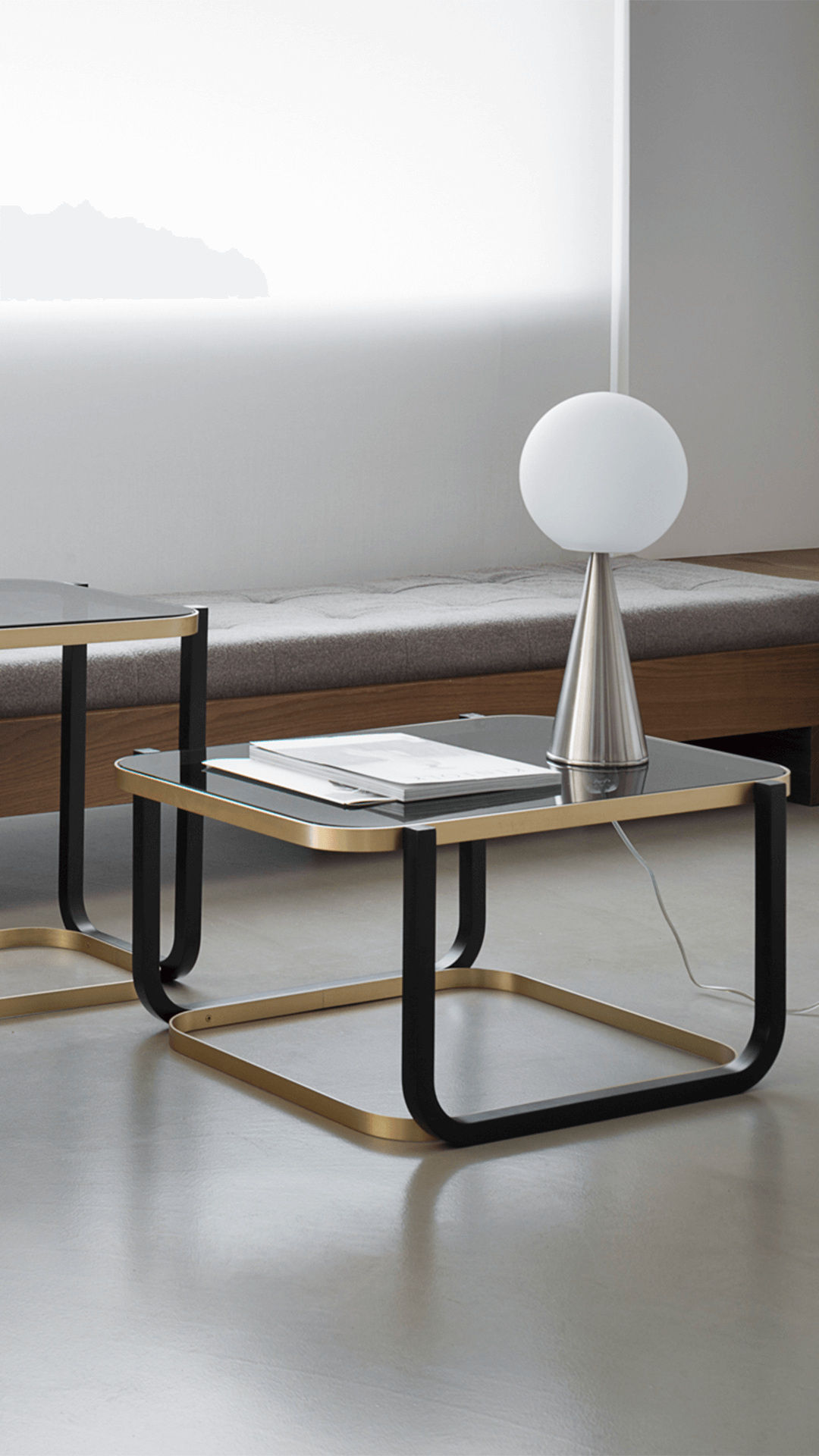 Transazioni di curve, vettori e materiali definiscono la collezione DUET di Cristian Mohaded composta da tre tavolini di diverse altezze e dimensioni. Le gambe in legno di faggio curvato a sezione quadrata si legano elegantemente alle basi in acciaio ottonato, creando un gioco di geometrie ispirate alle tradizionali linee e curve dell’azienda.