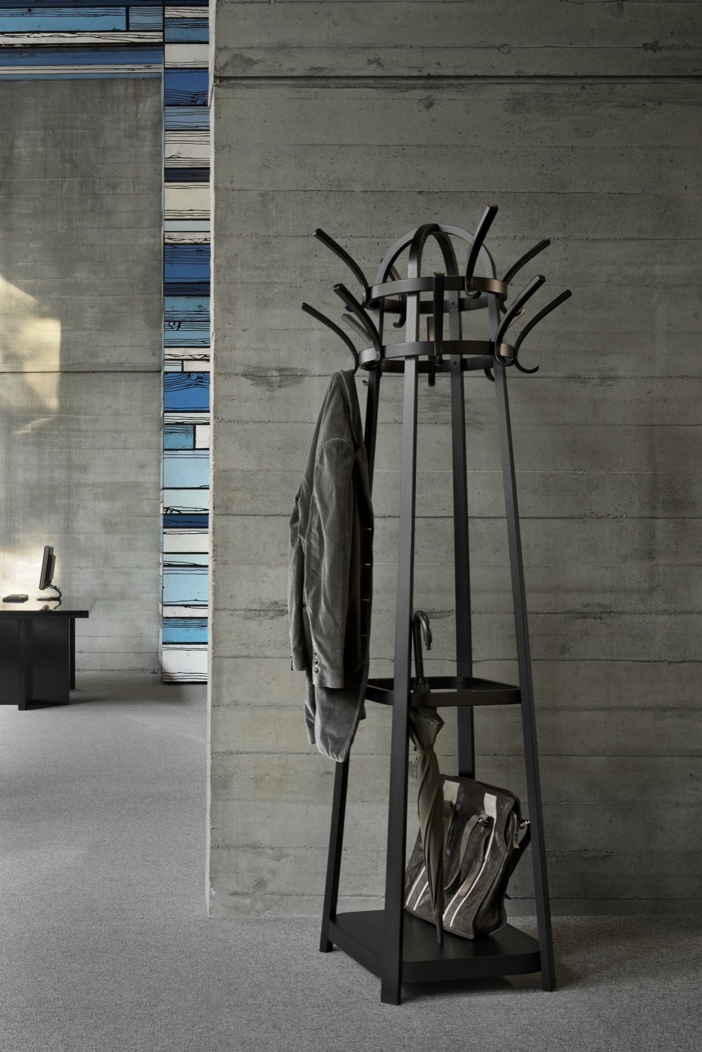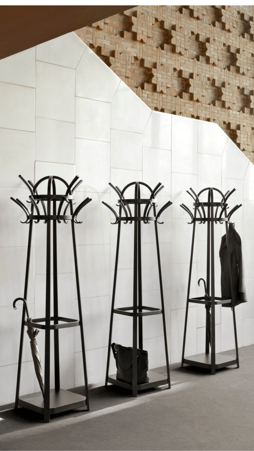 Il talento grafico e pittorico di Koloman Moser si esprime in un pezzo progettato nel 1905. L’artista e designer viennese sfrutta la tecnica del faggio curvato per modellare i 12 ganci appendiabiti, dalla doppia valenza pratica e decorativa. Un oggetto di grande valore storico.