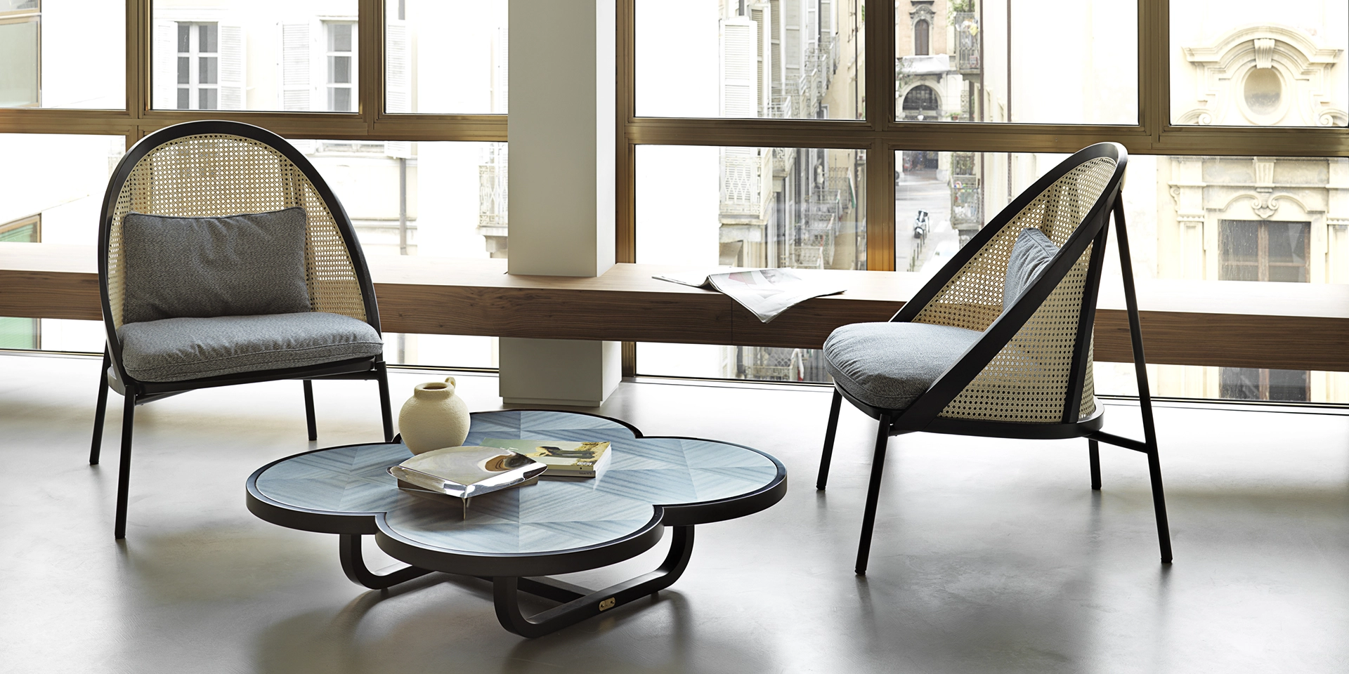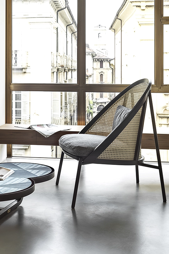 Con il suo stile equilibrato e la passione per l’alto artigianato Chiara Andreatti firma LOÏE, lounge chair dalle curve armoniose, che unisce agio e raffinatezza. Elegante esercizio di manifattura, perfetto connubio di tradizione e modernità che si definisce nell’armonico incontro di materiali diversi come il legno, la paglia di Vienna e il metallo.