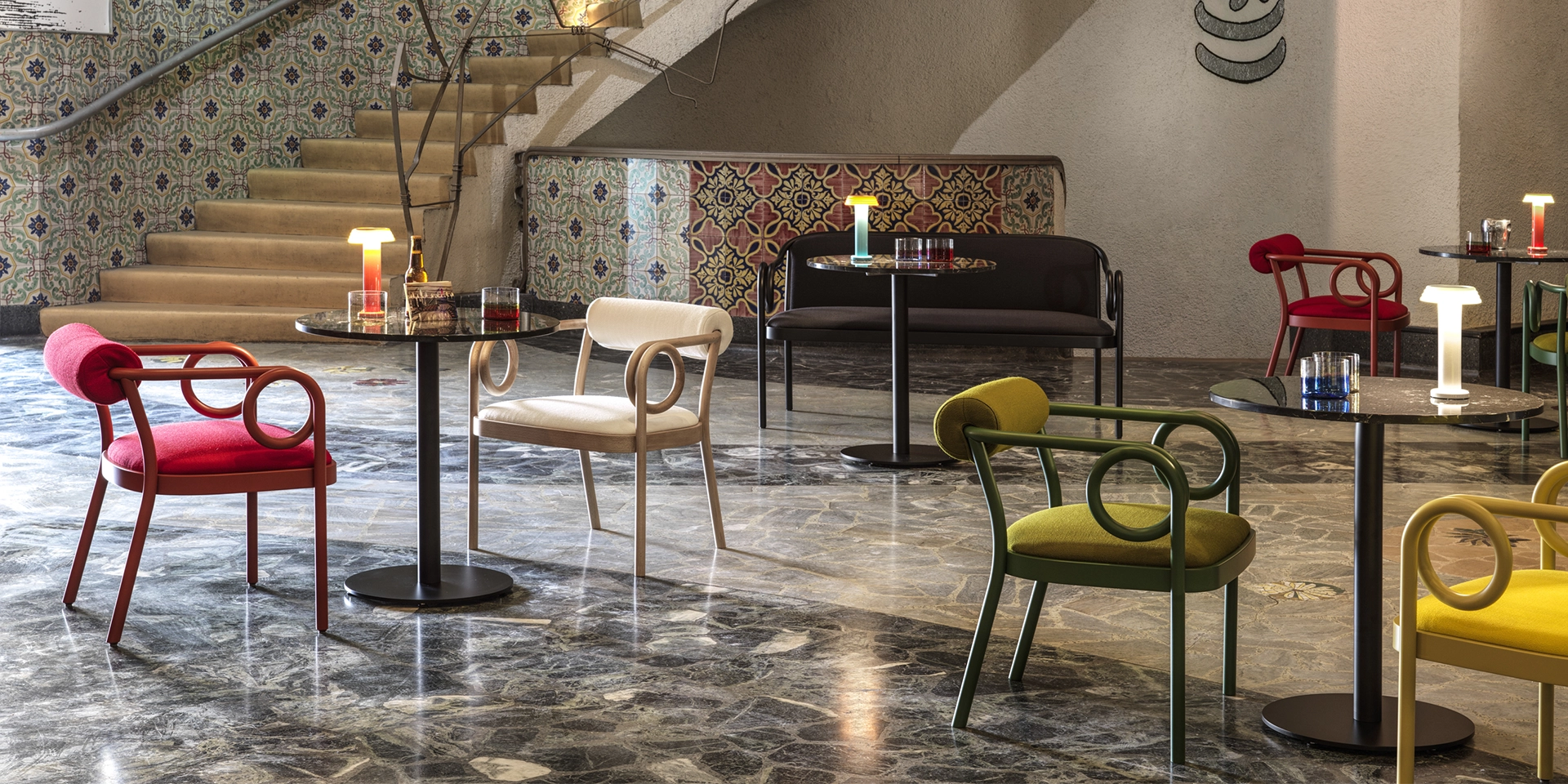 In risposta all’invito della storica azienda Gebrüder Thonet Vienna, India Mahdavi ha concepito la famiglia di prodotti LOOP, poltrona lounge e banquette, che ha il fascino di un disegno fatto a mano e beneficia del loro know-how ancestrale: “Gebrüder Thonet Vienna è l’unica azienda manifatturiera al mondo che permette di tradurre un disegno a mano libera dandogli una materialità lignea di quella qualità”.