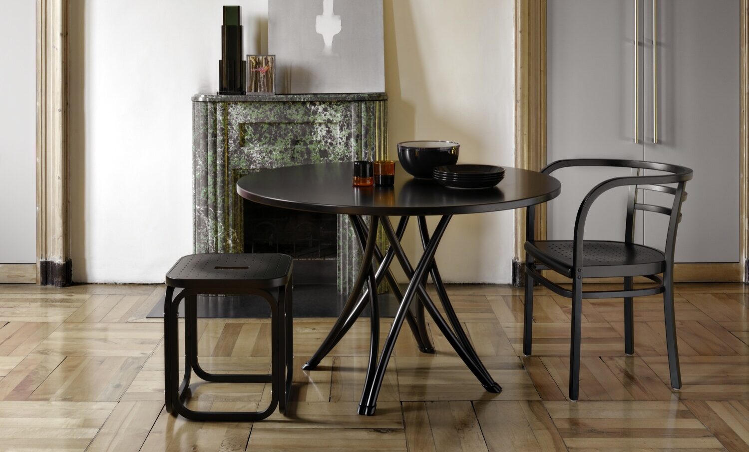 Giochi di intrecci. L’essenzialità della forma e dei volumi, segno inconfondibile della casa austriaca, rende Rehbeintisch un pezzo di grande attualità. Sensazioni di grande solidità e insieme di leggerezza, linee semplici e decise. La struttura è realizzata con la tradizionale tecnica del legno plasmato a vapore.