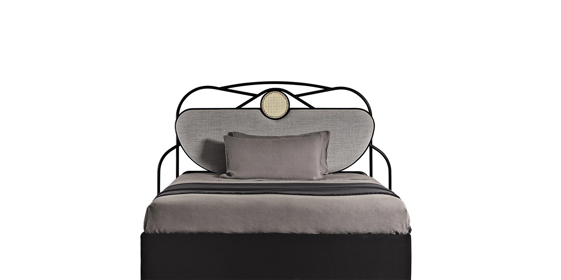 Una femminilità leggera ma dal deciso piglio creativo per la testiera YVETTE di Chiara Andreatti che si è liberamente ispirata alle forme decorative della Belle Époque. Progetto dalla ecclettica freschezza nella sua connotazione grafica, YVETTE si distingue per i profili curvati in legno laccato nero e in tubolare di metallo nero che disegnano sulla parete una delicata armonia di pieni e vuoti.