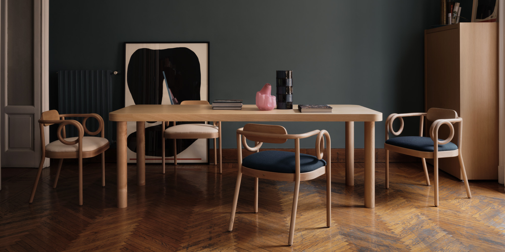 Gebrüder Thonet Vienna renews their collaboration with India Mahdavi: for the second year in a row, the unmistakable style of the internationally renowned architect and designer meets the Austrian brand’s emblematic curved lines, giving life to a new dining chair. To express the company’s ancestral know-how, India Mahdavi stayed true to the motion, pursuing the line without lifting her pencil.
