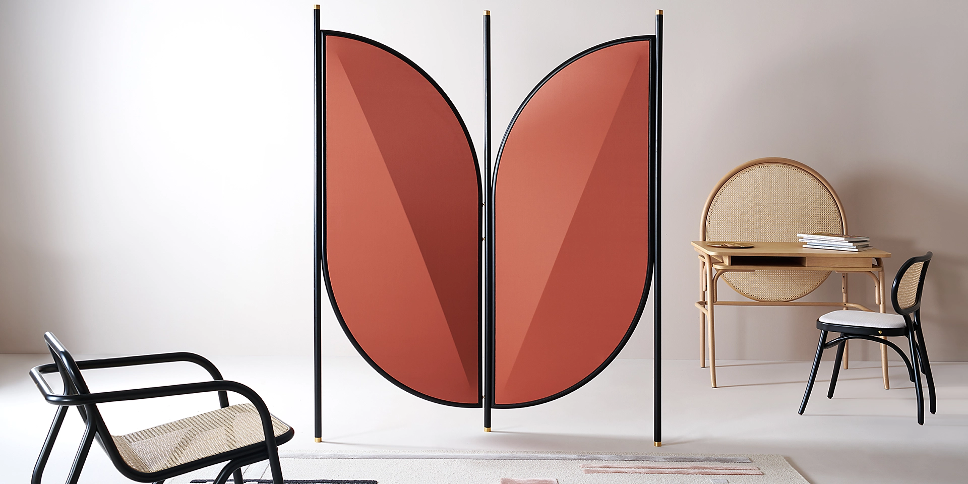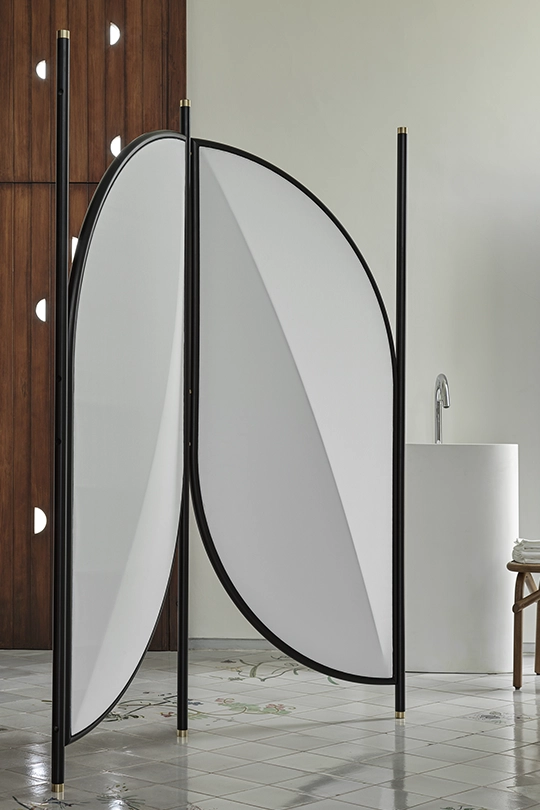 El biombo FENG nace de la voluntad del grupo Testatonda de combinar funcionalidades y sofisticación. El estudio conceptual inicia del concepto japonés «shibumi» (belleza discreta), encerrada en el diseño armonioso de las formas, en la esencialidad de los materiales y en la elegancia de los detalles, todos ellos elementos que sumándolos componen un objeto con un alma que es todo menos discreta, capaz de afirmarse en el espacio que desea delimitar.
